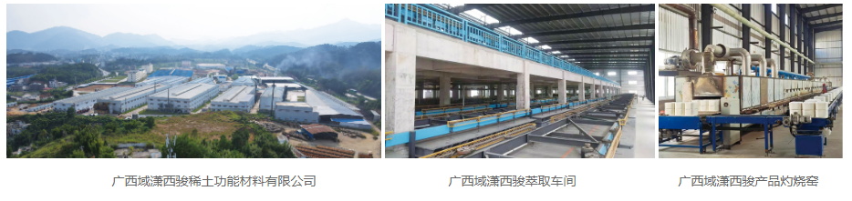 廣西域瀟西駿稀土功能材料有限公司擁有各類稀土原料的分離冶煉能力和鑭、鈰、鐠、釹、釤、銪、釓、鋱、鏑等 15 種稀土元素的分離冶煉技術(shù)和高純稀土產(chǎn)品的加工技術(shù)。公司目前擁有稀土生產(chǎn)過程及環(huán)保、循環(huán)再利用等自主知識產(chǎn)權(quán)專利 10 余項,萃取分離采用目前世界上最先進的聯(lián)動萃取及鈣皂化技術(shù),金屬冶煉采用獨家專利技術(shù)(專利號:ZL01212927.5)的萬安培大型稀土氧化物熔鹽電解技術(shù),可生產(chǎn) 2N-5N 的各種純度氧化稀土及其鹽類,產(chǎn)品在國內(nèi)外具有較高市場份額和響亮的知名度、美譽度。